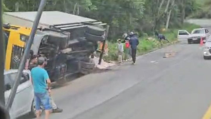 Bela Vista de Minas: caminhão tombou e a carga “voou”