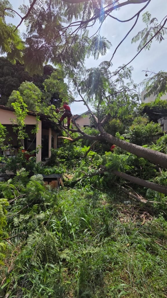 MILITARES CORTAM ÁRVORE DE GRANDE PORTE CAÍDA SOBRE RESIDÊNCIA