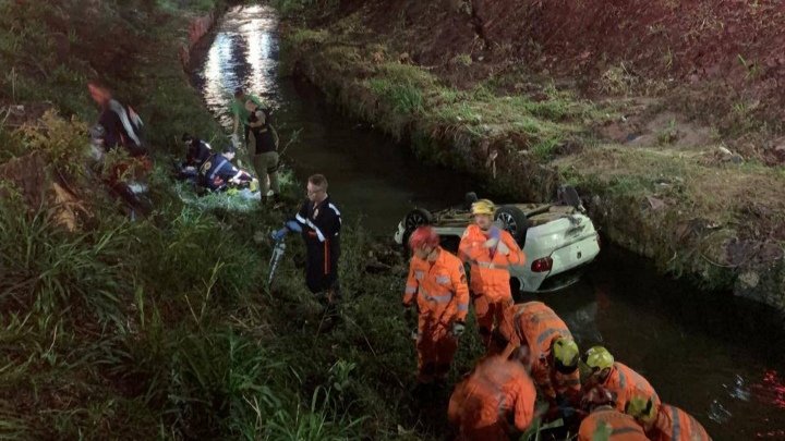 Betim: veículo cai em córrego deixando uma vítima fatal e três pessoas feridas (vídeo)