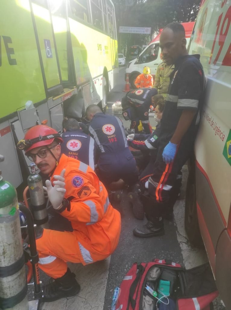 Bombeiros acionados nesta manhã (6), por volta das 6h, para atendimento de uma colisão entre ônibus e moto na avenida João Pinheiro, no bairro Lourdes.