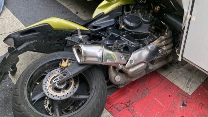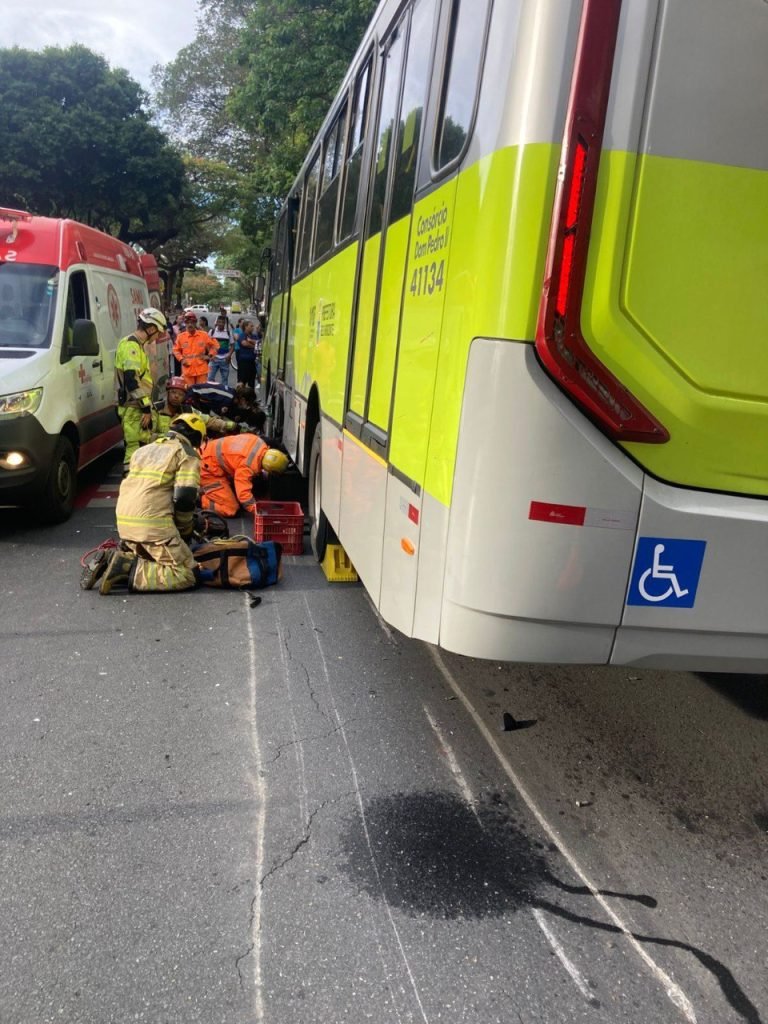 De acordo com testemunhas, a moto avançou o sinal e bateu na lateral do ônibus. A moto foi parar debaixo do ônibus e o motoqueiro ficou retido debaixo das ferragens.