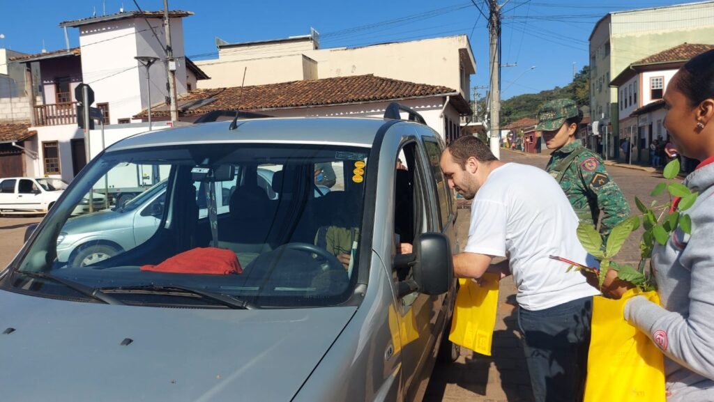 A equipe da secretaria, representantes da educação, militares da Polícia Ambiental de Minas Gerais e Bombeiros distribuíram material sobre cuidados com incêndios e animais silvestres, além do sabão ecológico e mudas de palmeiras jussaras, paineiras, ingás e mulungus para motoristas que trafegavam próximos à Praça 1º de Março e pedestres.