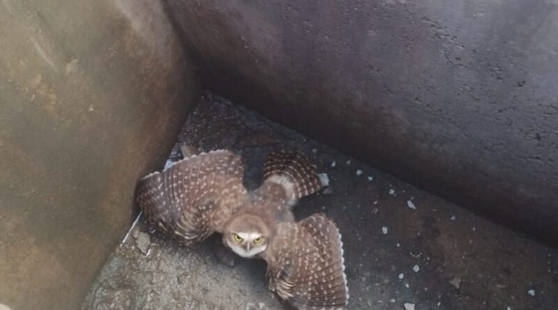 Bocaiuva: Resgate de coruja dentro de bueiro no estacionamento de supermercado (assista o vídeo)