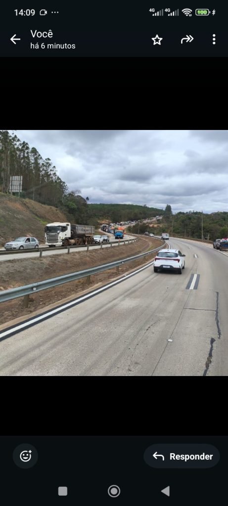 O veículo estava trafegando no sentido Belo Horizonte. O trânsito está complicado.