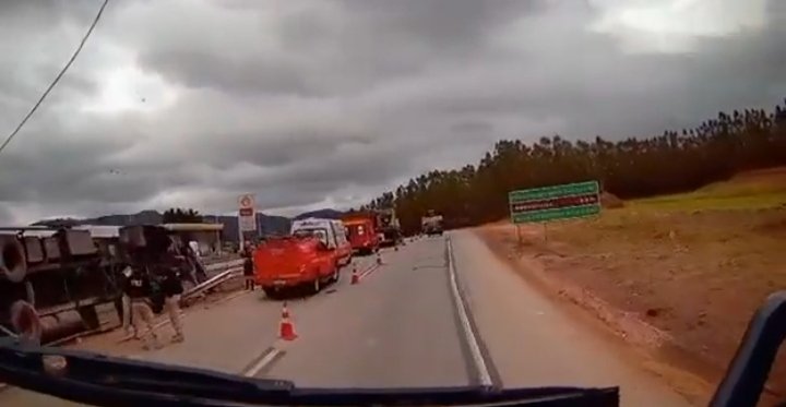 O acidente aconteceu na altura do Km 400, próximo do posto de combustível 65. Onde uma carreta capotou e o motorista infelizmente perdeu a vida preso às ferragens.