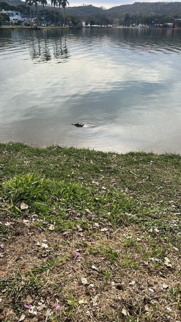 Bombeiros atuam em apoio à tentativa de captura de jacaré ferido na Lagoa Central de Lagoa Santa