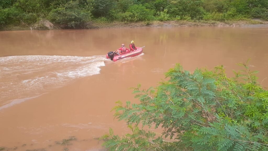 A equipe de busca havia iniciado as operações há cinco dias, utilizando bote e técnicas de buscas fora da água, devido às condições adversas da correnteza que impediam a navegação.