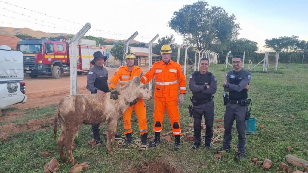 Após a abertura necessária, foram realizadas as devidas amarrações, possibilitando a retirada do jumento com sucesso. O animal apresentava algumas escoriações, mas foi resgatado com vida.