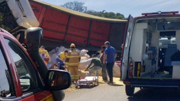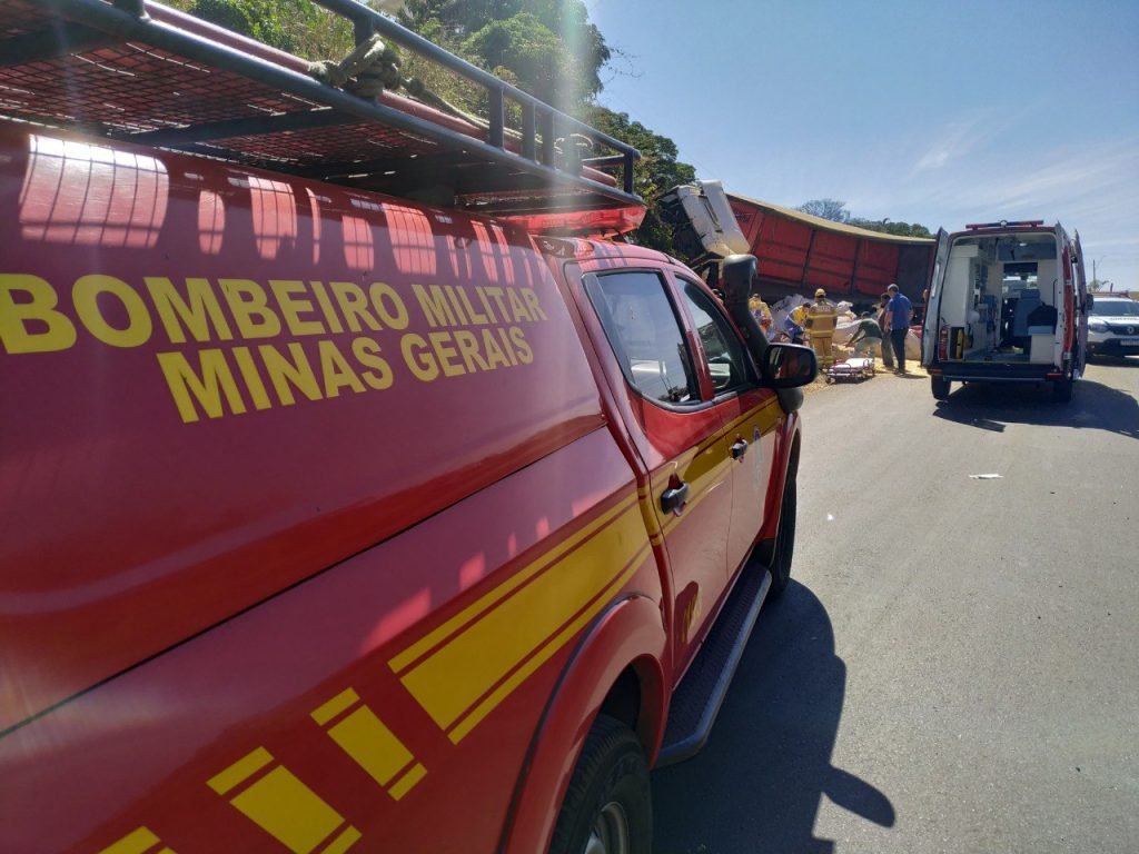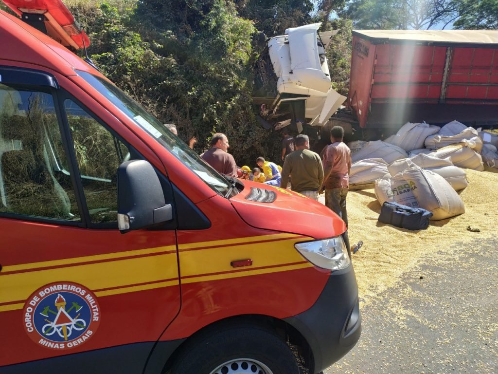 As equipes do Corpo de Bombeiros Militar de Minas Gerais constataram que uma carreta que trafegava no sentido bairro Taiaman colidiu na traseira de outra, que realizava retorno no trevo. Com o impacto, o veículo que vinha atrás perdeu o controle, subiu no barranco e o condutor ficou preso na cabine. A carreta transportava carga de grãos (milho).