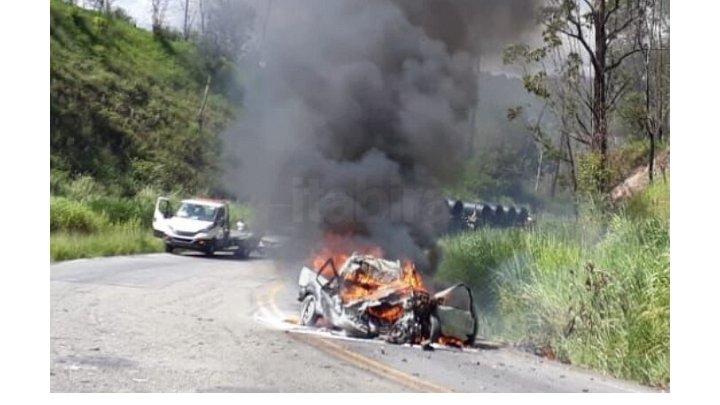 Segundo a Polícia Rodoviária Federal (PRF), houve uma batida frontal, com o impacto, o carro pegou fogo e o caminhão caiu em um desfiladeiro. Os dois sentidos da rodovia estão fechados.
