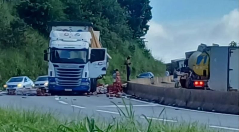 Uma carreta carregada com cervejas e refrigerantes que estava indo no sendido João Monlevade, ao passar pelo trevo da cidade de Caeté, a carga que estava acondicionada na carreta caiu na pista.
