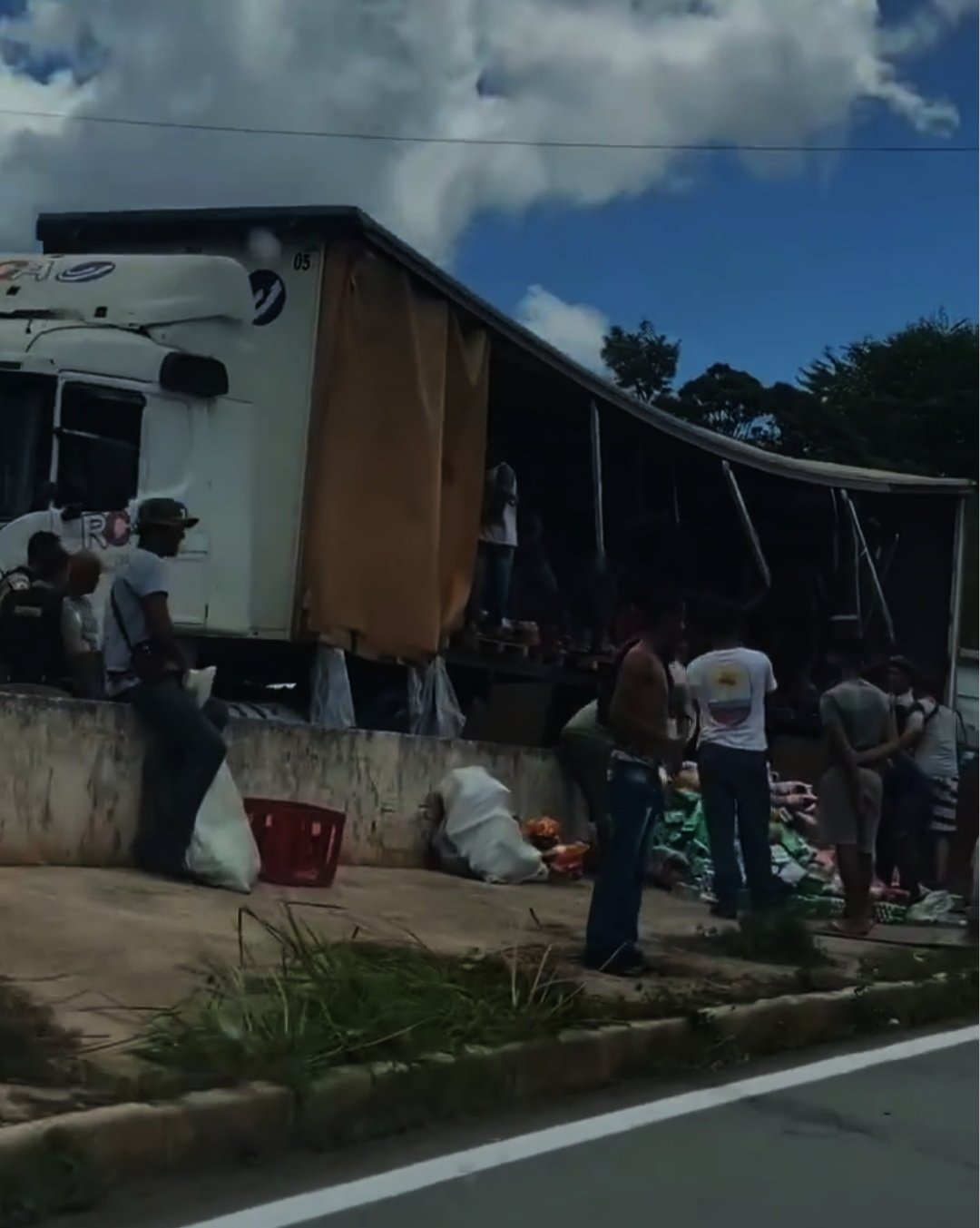 Mas como sempre, inúmeros motoristas pararam seus veículos e o saque da carga começou a ser saqueada, povo tava pior que urubu em carniça, moradores que residem próximo do trevo também não perderam tempo e como num passe de mágica a carga voou.