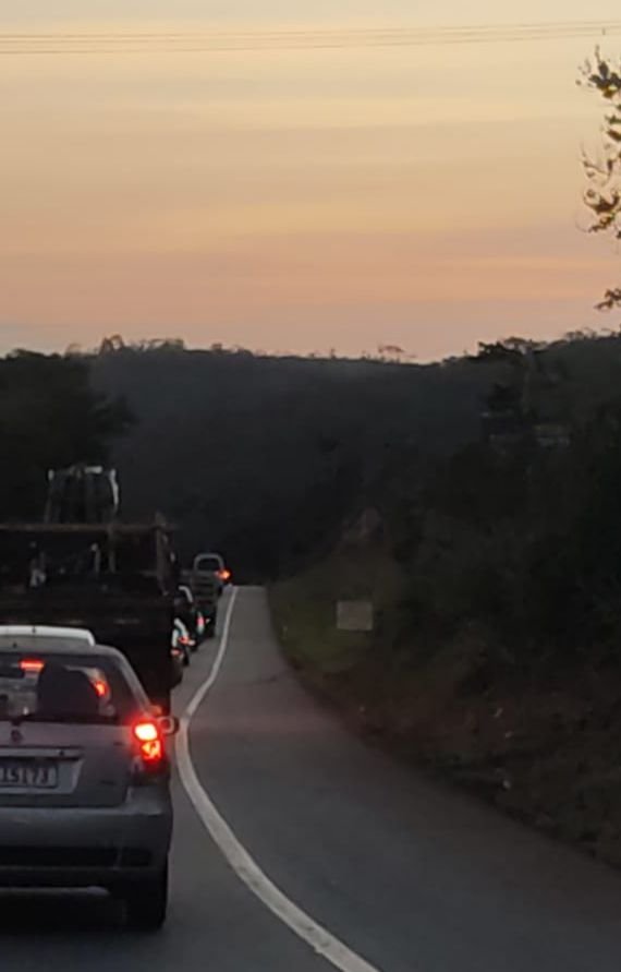 O trânsito teve uma leve retenção no período da tarde e agora no início da noite encontra-se lento devido a um acidente com vítima fatal em Roças Novas.