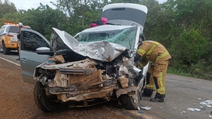 O Pelotão do Corpo de Bombeiros do João Pinheiro atendeu ocorrência de colisão entre um veículo de passeio e um caminhão na Rodovia MG-181, em Brasilândia de Minas. No local, os bombeiros encontram o condutor, um homem de 28 anos, preso às ferragens. Uma mulher gestante, de 37 anos natural de Unaí, estava em óbito. O motorista do caminhão sofreu ferimentos leves.