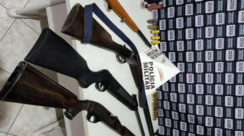 Durante buscas no interior do veículo foram encontradas outras três armas de fogo, bem como vasta munição e um pássaro do tipo “juriti”, abatido.
