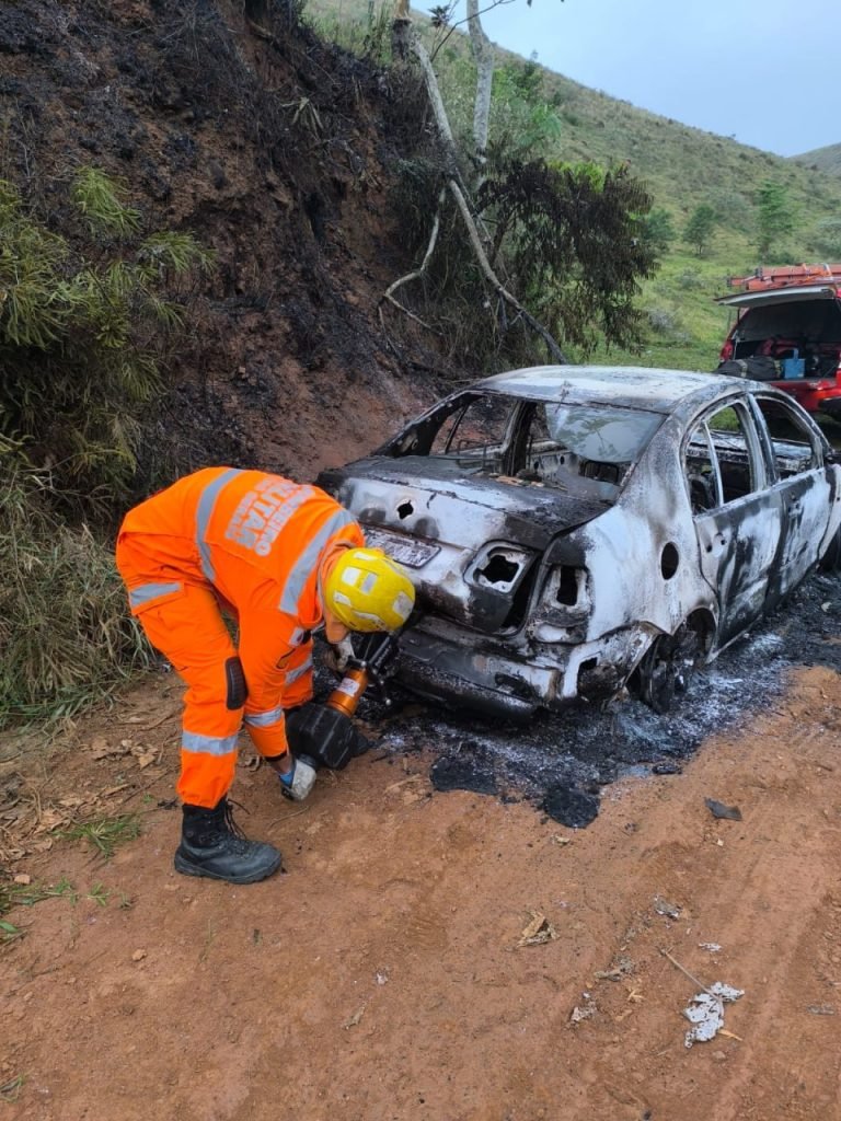Cadáver foi encontrado totalmente carbonizado dentro de veículo hoje em Juiz de Fora