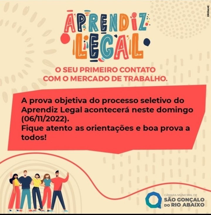 Câmara de São Gonçalo: divulgadas as orientações para a realização da prova do Aprendiz Legal 2023 saiba mais aqui (#compartilhe)