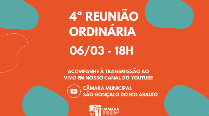 Retornando do ponto facultativo de carnaval, a Câmara de São Gonçalo do Rio Abaixo realiza nesta quinta-feira, a sua 4ª Reunião Ordinária de 2025. A Sessão inaugura os encontros legislativos no mês de março.