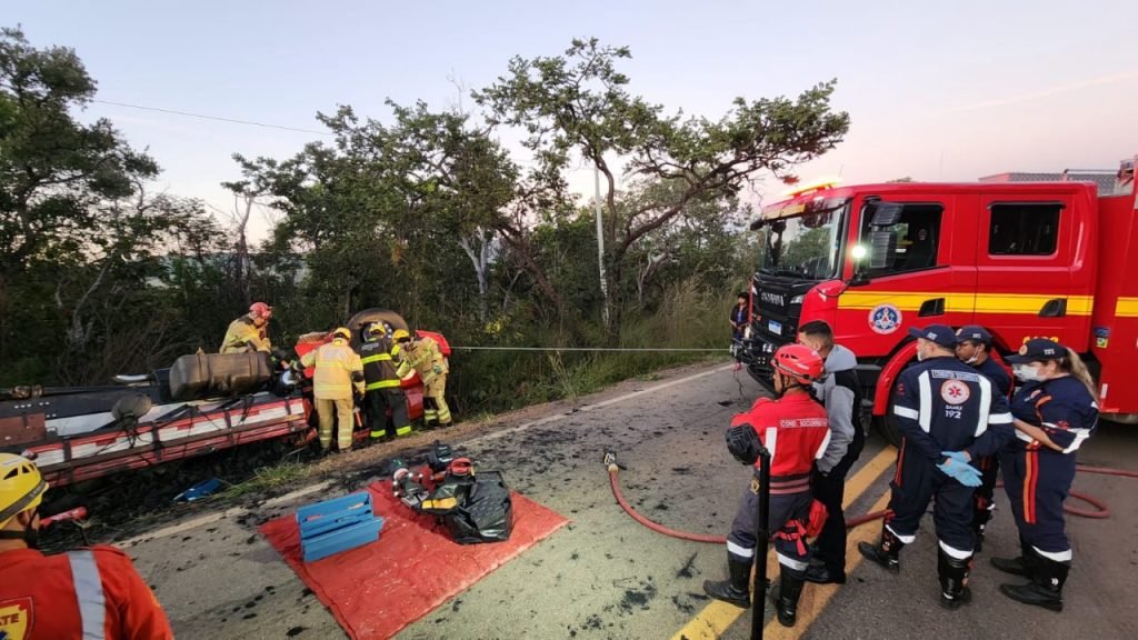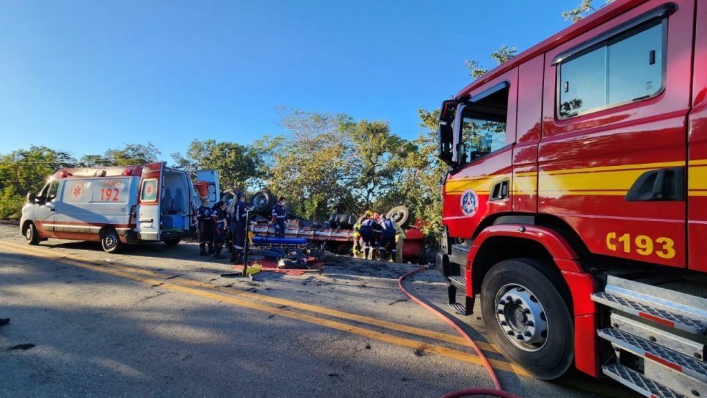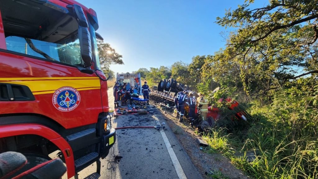 Após retirar a vítima em óbito, os bombeiros chegaram até a vítima ainda com vida. O passageiro de 28 anos de idade, natural de Brasilândia de Minas/ MG, estava estável, com as duas pernas presas sob a cabine.