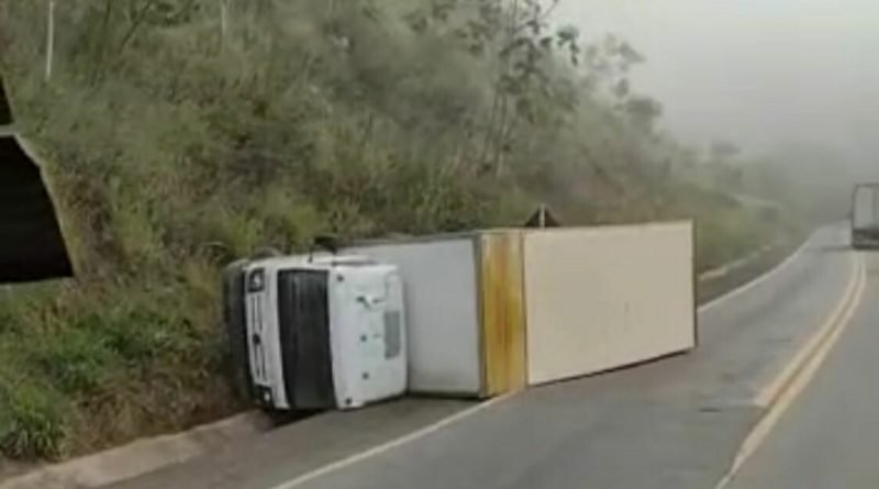Um caminhão baú tombou na BR-381, na manhã desta quinta-feira, na saída de Ipatinga para Governador Valadares.