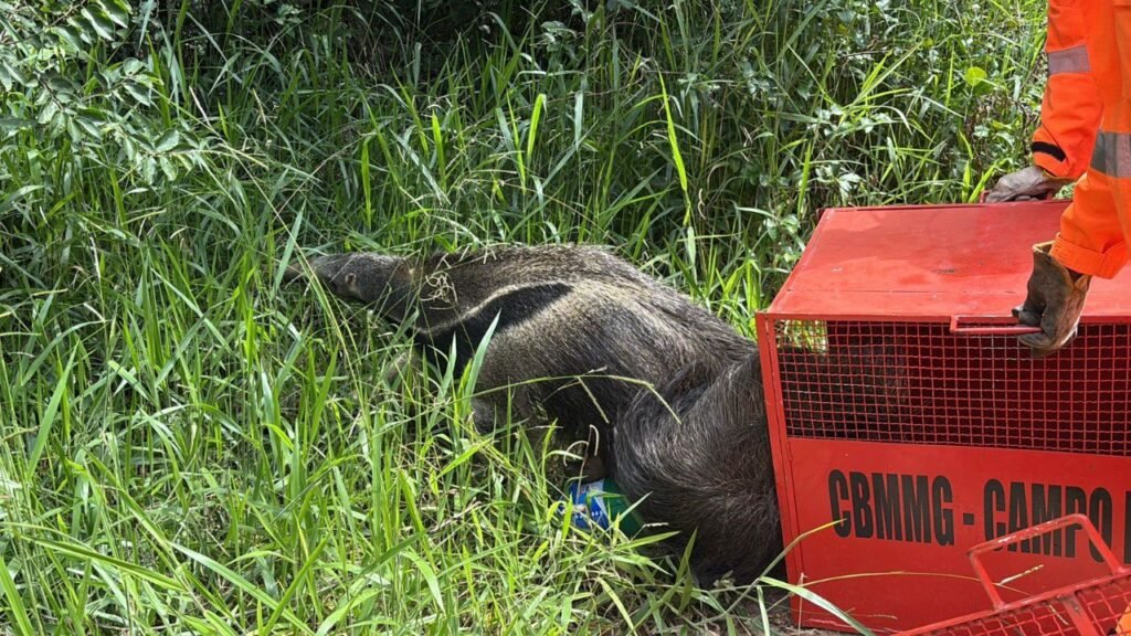 Após a intervenção, o tamanduá foi devolvido ao seu habitat natural, em área de mata adequada.