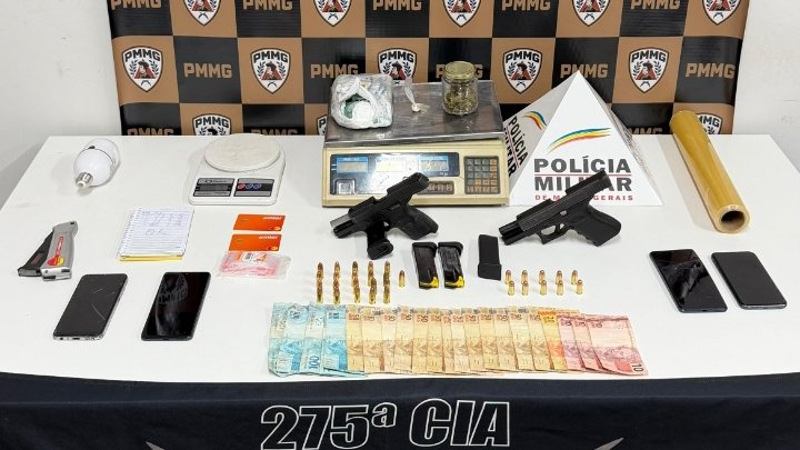 O autor preso, as armas de fogo, as drogas e os demais materiais foram encaminhados à Delegacia de Plantão em Ipatinga para as providências cabíveis.