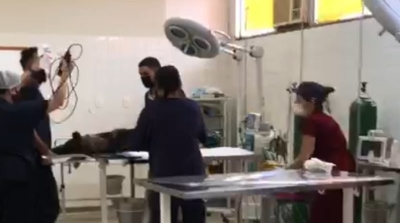 Rapidamente, o animal foi socorrido de helicóptero para o Hospital Veterinário da Faculdade Arnaldo, sendo encaminhado ao bloco cirúrgico para um procedimento de emergência. O cão passa bem e o estado de saúde é estável.