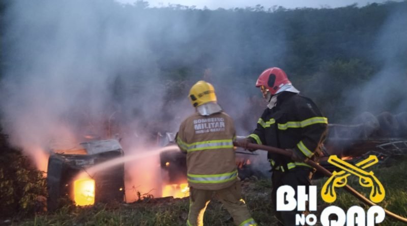 Capotamento de carreta em Salinas MG, seguido de incêndio BR 251, KM 278