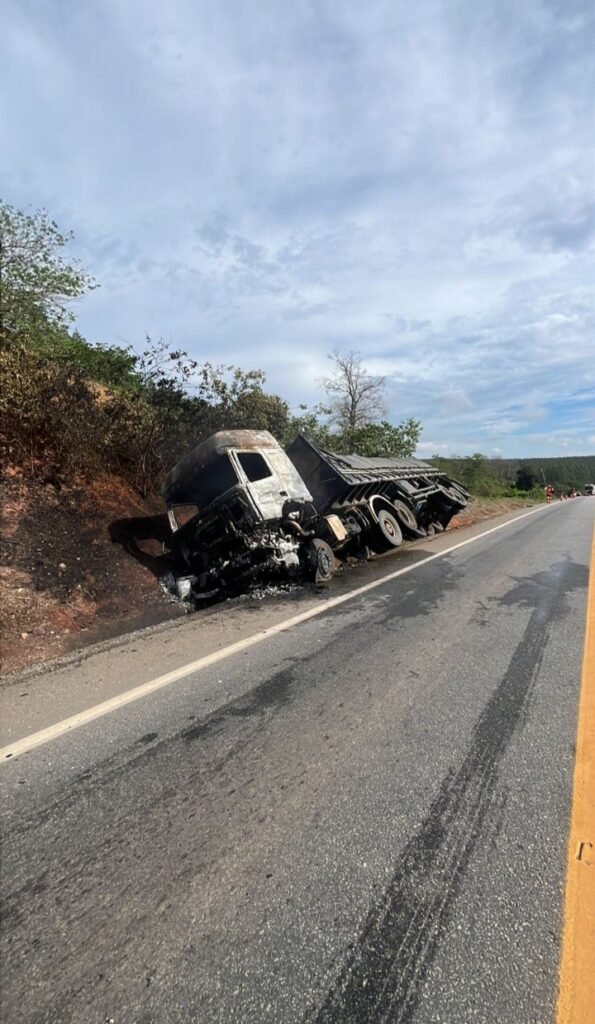 CARRETA CARREGADA COM CAFÉ PEGA FOGO NA RODOVIA BR-381