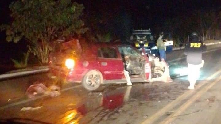 CARRO E CARRETA BATEM DE FRENTE NA BR-116 E DUAS PESSOAS FICAM FERIDAS