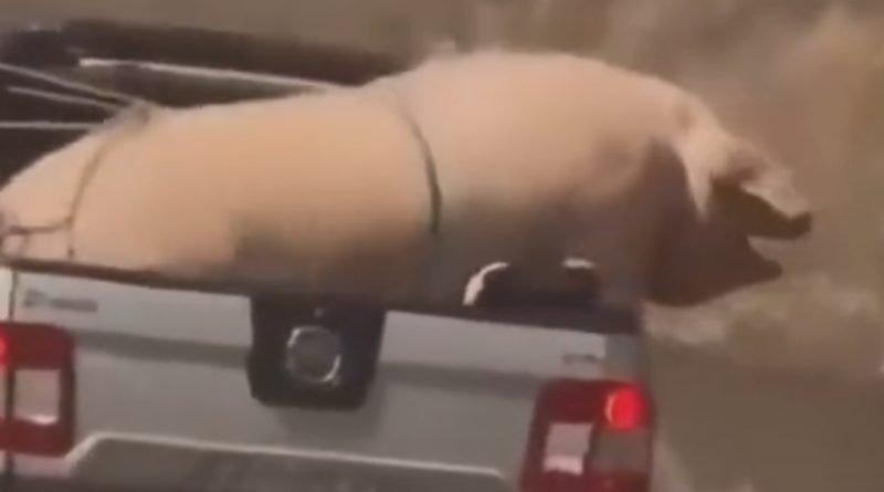 Carro é flagrado transportando irregularmente porco gigante