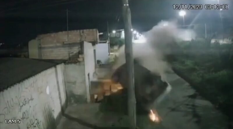Vídeo de câmeras de seguranças flagraram o momento em que o veículo “voa”, atingindo um poste e o muro de uma residência às margens do Anel Rodoviário.