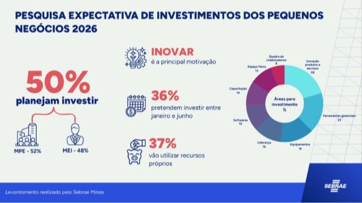 Metade dos pequenos negócios mineiros pretende investir em 2026, aponta pesquisa do Sebrae Minas