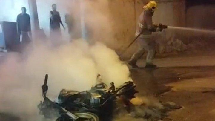 Os bandidos estavam em duas motocicletas furtadas. Após os elementos, abandonar as motocicletas, bandidos da facção rival colocaram fogo nas motocicletas.