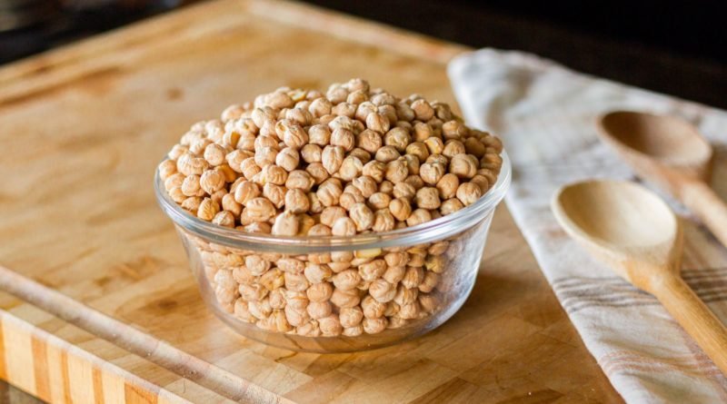 Cozinhe o grão de bico em uma panela de pressão por 5 minutos. Após o cozimento, escorra e seque com papel toalha.