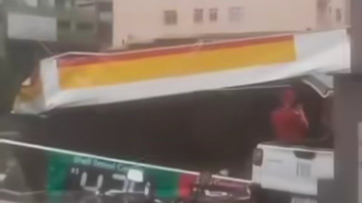Além da forte chuva, houve uma tempestade de ventos que derrubou a cobertura de um posto de gasolina, situado na área central da cidade perto da Maxmoto.
