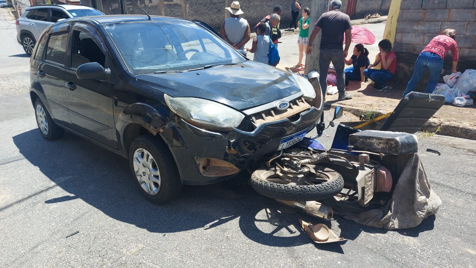 Colisão entre automóvel e moto no Novo Horizonte agora em João Monlevade
