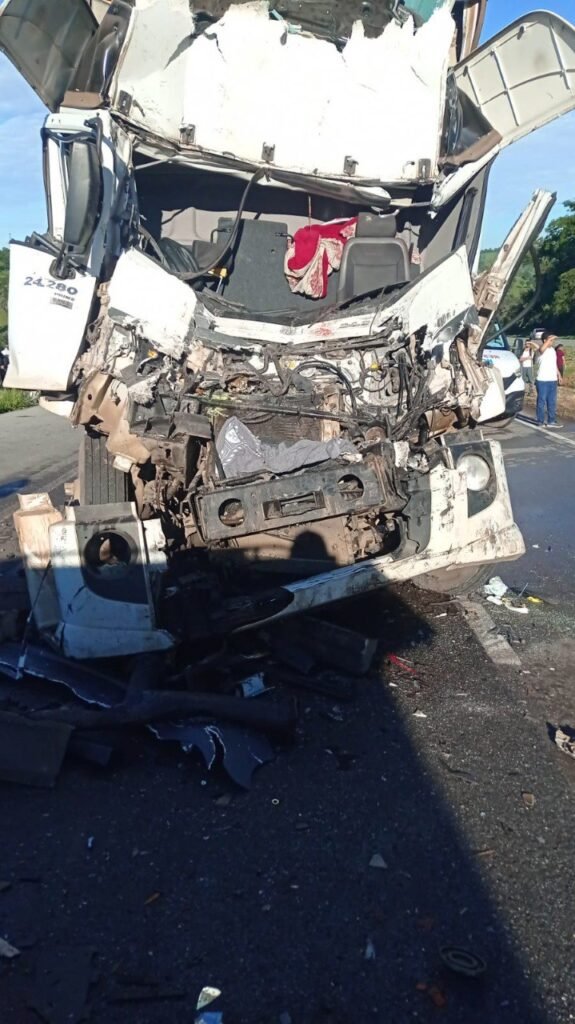 COLISÃO ENTRE CARRETA E CAMINHÃO DEIXA UMA VÍTIMA EM ESTADO GRAVE E ATRAPALHA O TRÂNSITO NA BR-262