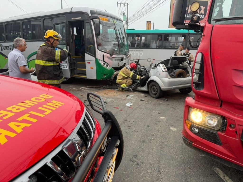 No local, o condutor do automóvel, um jovem de 23 anos, encontrava-se preso às ferragens, em estado grave, com nível de consciência rebaixado e múltiplas lesões, além de estar totalmente encarcerado sob o coletivo.