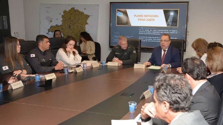 A reunião foi realizada no Prédio Alterosas, Cidade Administrativa, e conduzida pelo superintendente do GMF/TJMG, desembargador José Luiz de Moura Faleiros, e pelo secretário de Estado de Justiça e de Segurança Pública de Minas Gerais, Rogério Greco.