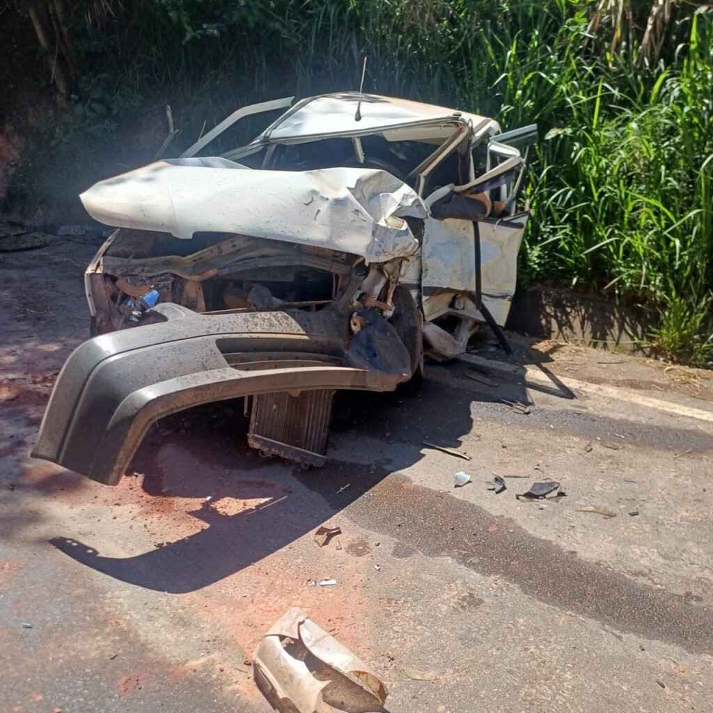 Colisão entre automóvel e caminhonete com vítimas fatais presas às ferragens