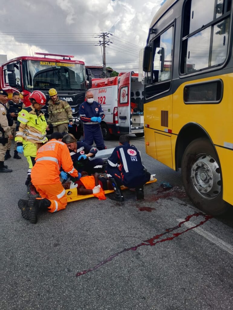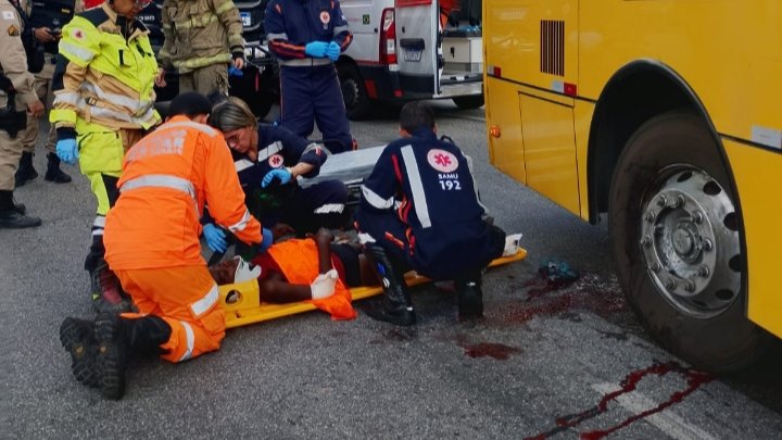 A vítima ficou presa com as pernas debaixo de uma das rodas dianteiras do ônibus. Os bombeiros constataram lacerações nos dois membros e perda de tecidos cutâneos e subcutâneos. Antes dos bombeiros chegarem, militares da Polícia Militar fizeram dois torniquetes, um em cada perna, o que estancou o sangramento. Os bombeiros conseguiram elevar o ônibus com o uso de equipamentos e repassaram avítima para o SAMU.