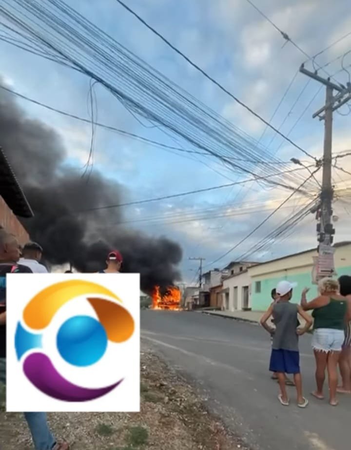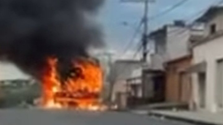 Um ônibus está sendo destruído pelas chamas no bairro Nova Contagem, na cidade de Contagem, região metropolitana de Belo Horizonte.