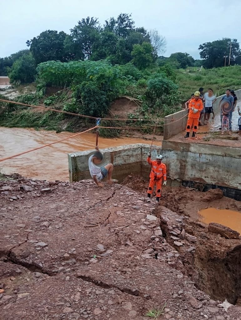 Na comunidade de Angical, várias pessoas ficaram ilhadas, sendo que uma ponte de acesso apresentou desbarrancamento em sua cabeceira, tornando-se intransitável e com risco de colapso do terreno. Diante do cenário, as equipes realizaram a interdição da área e iniciaram operação de salvamento para garantir a segurança dos moradores.