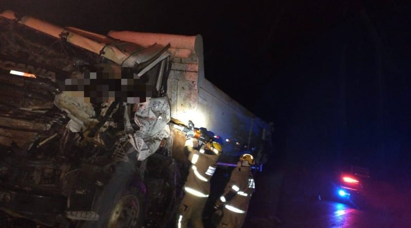 Ao chegar no local, a equipe de bombeiros deparou com um caminhão caçamba na via e o seu motorista preso às ferragens, porém, já em óbito, que foi constatado pelo SAMU.