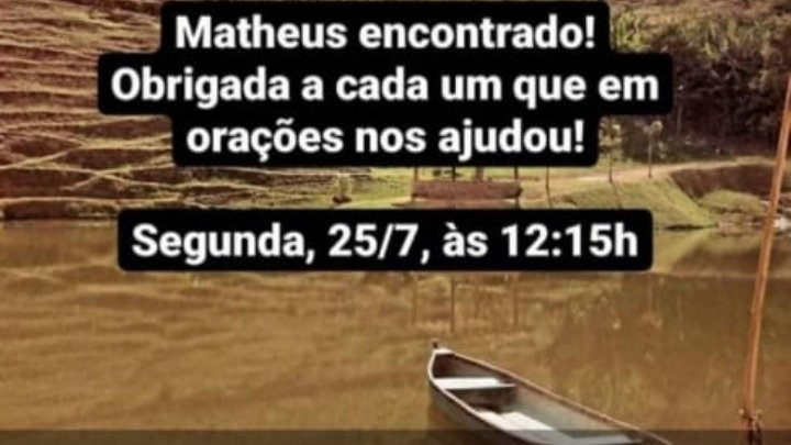 O corpo do jovem Matheus Crepalde foi localizado hoje por volta de meio-dia.
