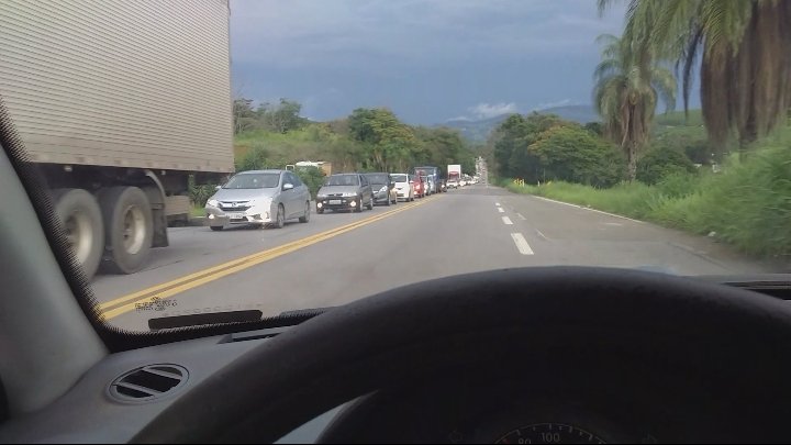 O repórter que foi enviado para corrigir a matéria foi até o final da fila para saber a distância do congestionamento, cerca de 9 km pois a fila estava até na Porteira Amarela.