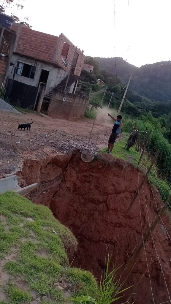Os moradores do bairro estão assustados com uma cratera que se abriu no período das fortes chuvas do ano passado, com uma dimensão de 8 metros de profundidade por 6 metros de cumprimento, essa cratera está muito próximo de algumas residências e moradores temem que as chuvas volte e essa cratera vem aumentando ficando aínda mais próximo das residências, e caso ela aumente de tamanho no próximo período chuvoso fatalmente irá atingir as residências próximas.