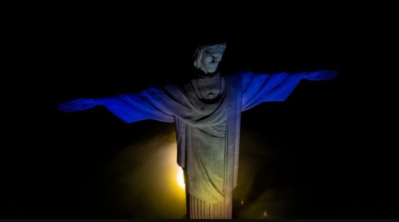O icônico marco brasileiro, sendo normalmente banhado por uma luz branca, foi visto azul e amarelo brilhante sob a cidade na sexta-feira (26 de Novembro), em uma exposição pela Arquidiocese Católica Romana de São Sebastião, Rio de Janeiro e pelo Embaixador de Barbados no Brasil.