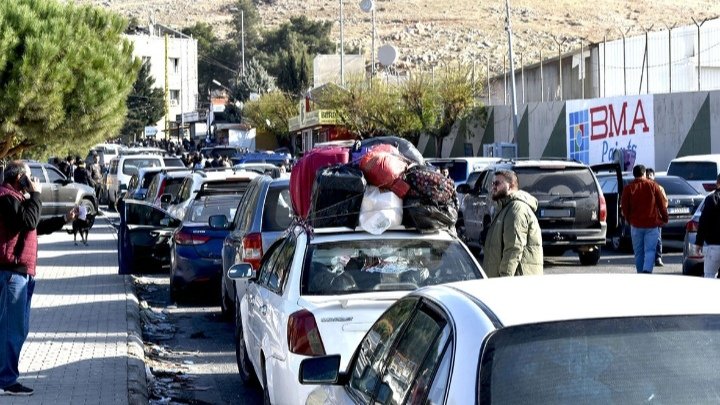 Filas de veículos se formam no ponto de fronteira de Masnaa, no Líbano, em 8 de dezembro, enquanto refugiados sírios aguardam para cruzar de volta para a Síria. © UNHCR/Road2Films